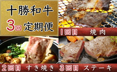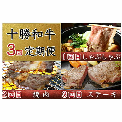 【ふるさと納税】十勝和牛の定期便(大)3回【北海道幕別町】 【定期便・ステーキ・すき焼き・お肉・牛肉・焼肉・バーベキュー】 十勝の大自然でのびのびと育った十勝和牛を焼肉用、しゃぶしゃぶ用、ステーキ用にカットし定期便でお届けします。