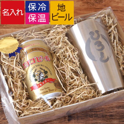 お酒 タンブラー プレゼント グラス 名入れ ギフト セット 地ビール 新潟 ビールグラス ビアグラス 父の日 お酒 【 真空断熱タンブラー 450ml & エチゴビール セット 】 ビール 酒器 ステンレス ビアタンブラー 名前入り 義父 還暦祝い 誕生日 男性 父 60代 退職祝い 定年